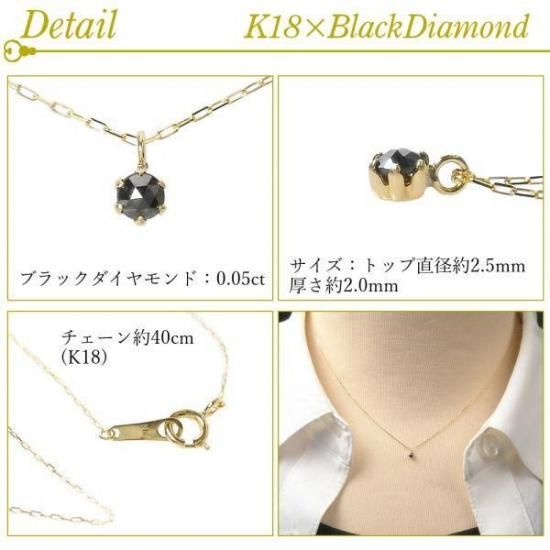ブラックダイヤモンド ネックレス 一粒 ギフト プレゼント 18金ゴールド スキンジュエリー